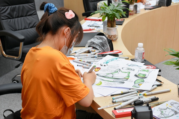 構思、立意、繪制、上色……經過一天的設計創作,50件凝聚選手創意的運動鞋設計作品躍然紙上,有的結合民族品牌鴻星爾克進行再創作;有的選用國潮元素,將哪吒形象融入設計中;有的以“乘風破浪”為理念,設計風浪循環鞋;有的考慮洪水自然災害,設計一款可定位、低壓絕緣運動鞋……最后一款鴻星爾克與潮牌Sacai的聯名鞋設計作品獲得該項目一等獎。