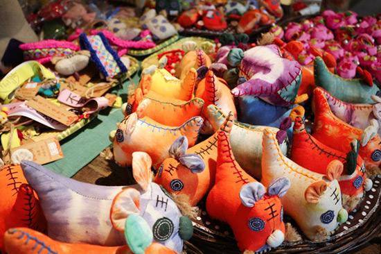 “一針一線,連布料扎染,都是我們自己做的。你莫看它憨憨的,它可是我們這里吉祥物,帶它回去,就是把吉祥平安帶回去哦”張玉芳說。