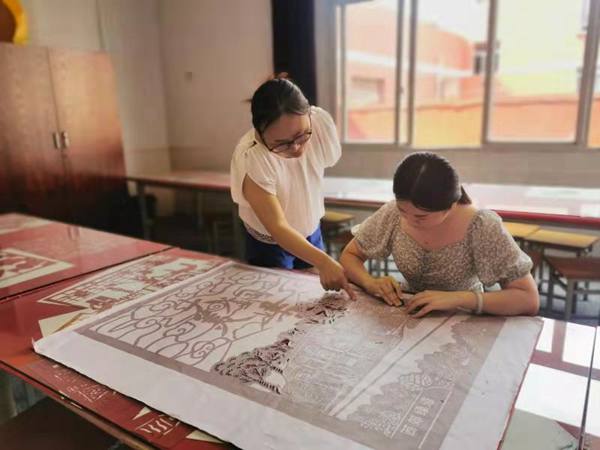 彭汝琴每天課余時間都在和美術組其他老師討論,大家各抒己見。經過集思廣益,最終確定先在白紙上畫出鉛筆稿,再使用陰刻與陽刻相結合的剪紙手法。圖形除了景點中的代表性地點與各類元素,老師們還搜集了大量素材,讓最終的作品呈現出現在令人震撼的藝術效果。