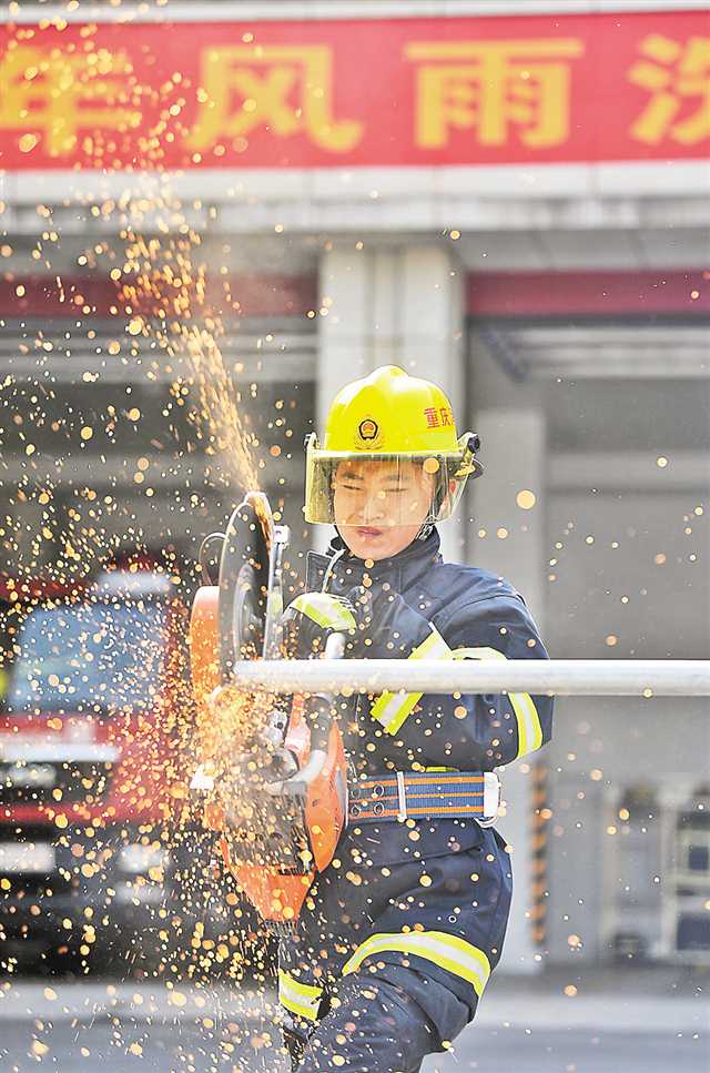 8月2日,南岸區消防隊員正在高溫下訓練。特約攝影 郭旭/視覺重慶