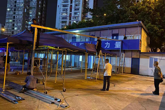 重慶醫藥高專附一院后勤保障科黨支部連夜搭建帳篷。院方供圖