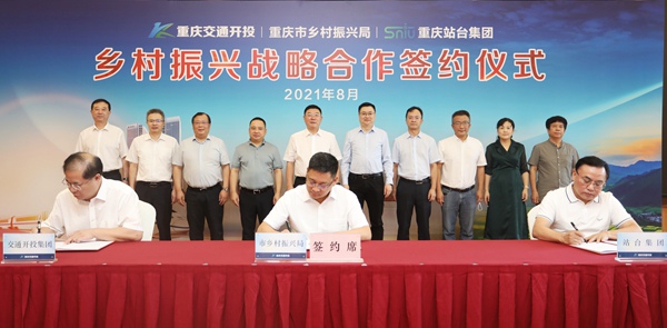 交通開投集團與市鄉村振興局、站臺集團簽訂《服務鄉村振興戰略合作協議》。交通開投集團供圖