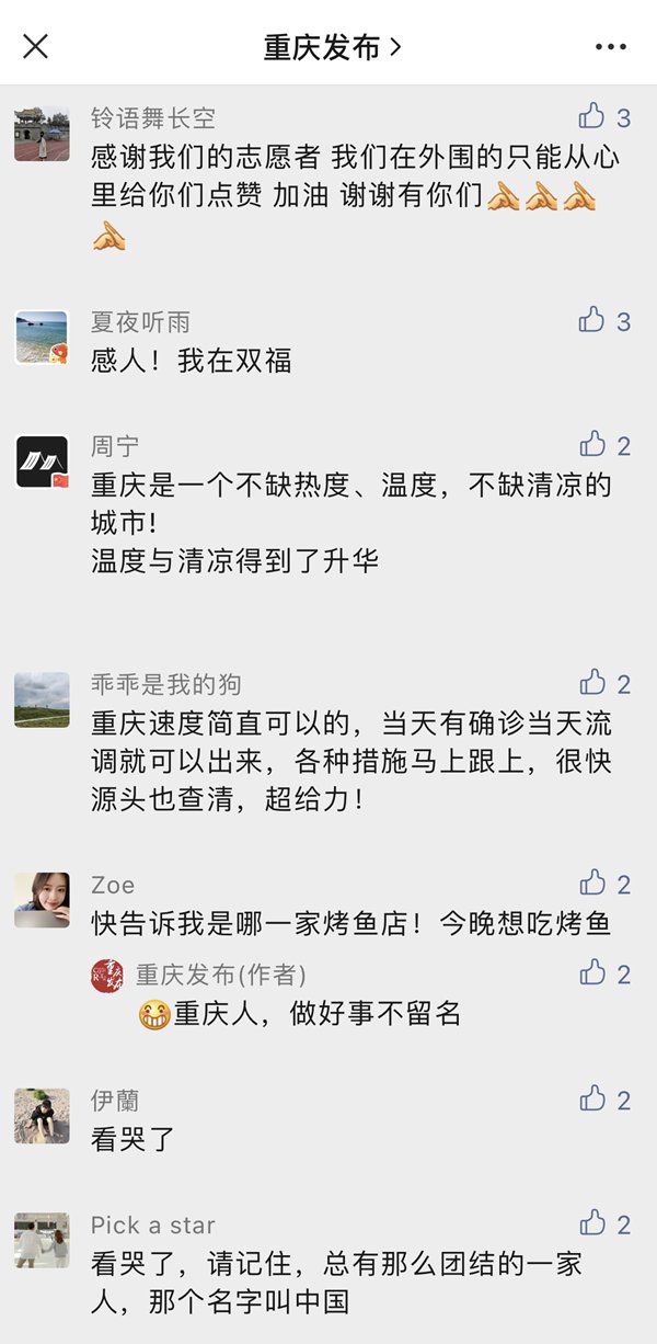 一位不愿意透露店名的烤魚店老板,把店里的兩臺室外空調捐出來;不少市民從超市里買了冰棒送來;璧山區一對青年夫婦自駕到江津為一線防疫人員送去西瓜;雙福國際農貿城銷售水果的王倩將新進的1萬余斤西瓜全部送了出來……