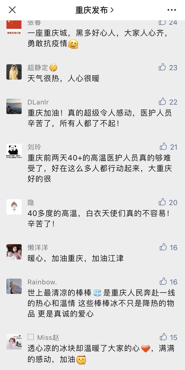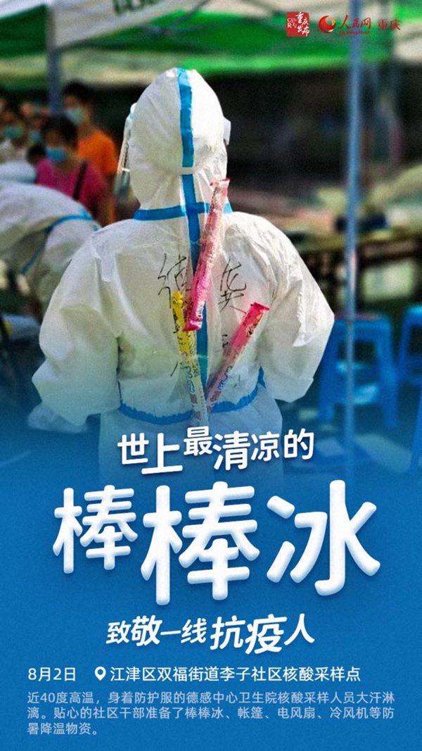 這幾天,疫情防控遇上山城酷暑,為給重慶江津雙福片區一線防疫人員送清涼保健康,一場政府聯動、全民攜手的“送冰”行動迅速開展。