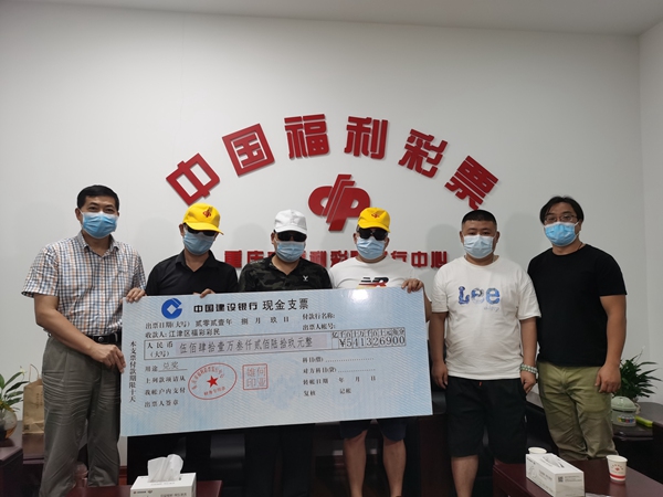 此次江津中獎彩民共4人,其中3位中獎彩民親自前來領獎?!拔覀兒土硗庖幻腺I的在同一個市場上班,平時也都認識,一直以來買彩票都很‘佛系’?!?/p>