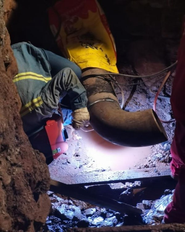 8月5日晚23點,重慶燃氣一線員工進行管道焊接。重慶燃氣集團供圖