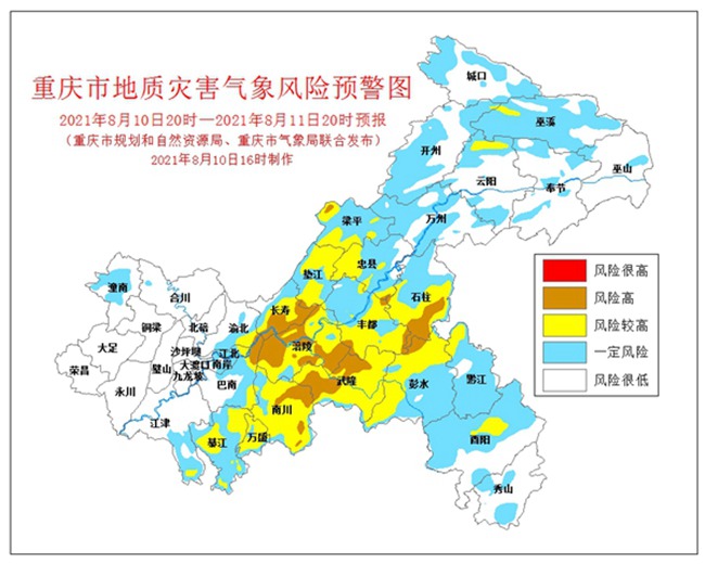 人民網重慶8月10日電 8月10日16時,重慶市規劃和自然資源局、重慶市氣象局聯合發布全市地質災害氣象風險預警。