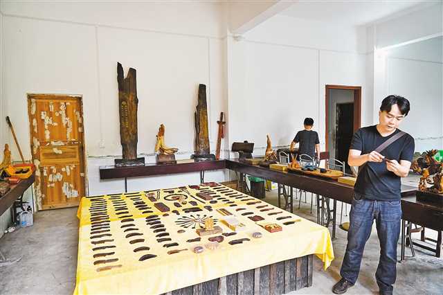 2020年8月,在巫溪縣神木工藝扶貧車間,四川美術學院教授皮永生思考文物IP如何賦能手工藝品。(受訪者供圖)
