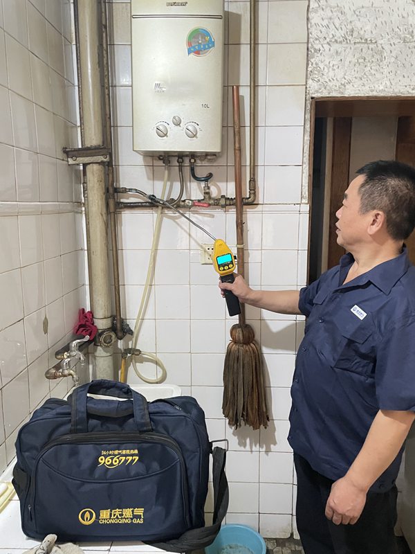 彭龍學逐一排查漏氣點。重慶燃氣集團供圖