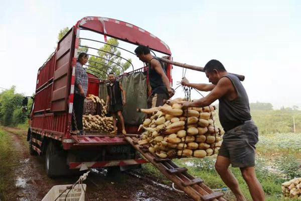 在平灘鎮,蓮藕更是從7月就已經開挖,搶占夏季市場。在當地種藕大戶蔡金安、蔡金云兄弟的帶動下,平灘鎮依靠“基地+合作社+農戶”的模式,全鎮種植蓮藕近萬畝,每年產值4000多萬,帶動1000多戶3000多名村民就業,年人均增收一萬余元。