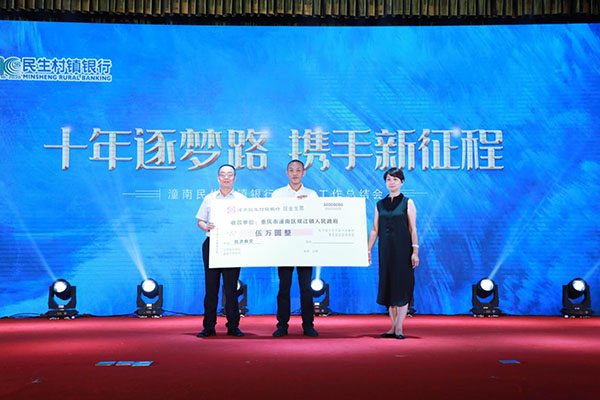 潼南民生村鎮銀行向潼南區雙江鎮人民政府捐款。民生銀行重慶分行供圖