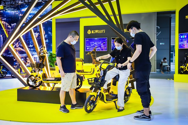 人民網重慶8月23日電 8月23日,2021中國國際智能產業博覽會在重慶開幕。國內共享電單車平臺松果出行攜智能電動車、智能鋰電實時監測系統等參展。