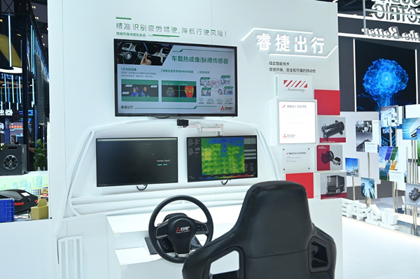 在“睿捷出行”展區,三菱電機展示了加入DMS、AVM功能的Display Audio,可為駕車者創造更優質的體驗。同時,駕駛員身體狀態感知系統能夠準確識別司機面部的細微變化,在疲勞駕駛狀態下及時預警,為行車安全護航。