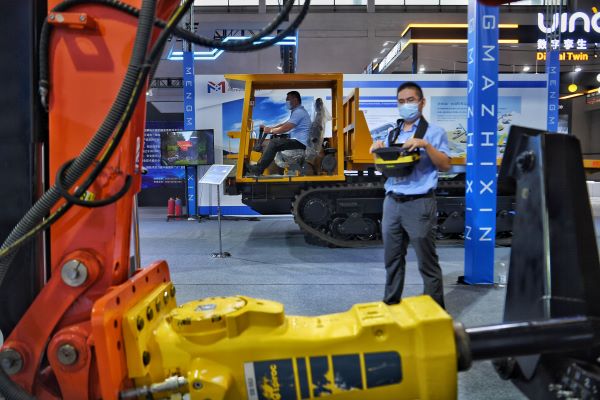 “機身小,靈活,但動力強勁,可配備多種工具頭滿足不同的作業要求,且使用安全高效! 夢馬致新總經理程友祥對展區的設備如數家珍,他介紹的這臺遙控作業機器人是公司的核心產品,智博會開幕第一天就被貴州水利部門訂購,將用于當地小型隧道工程的挖掘作業。