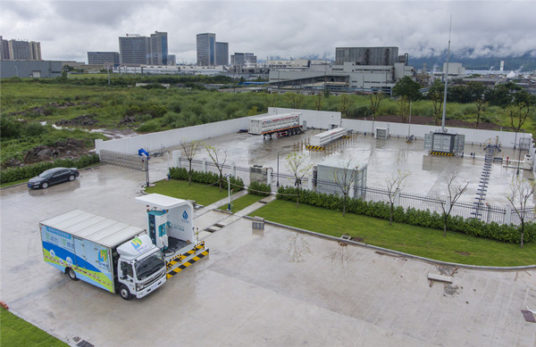 “車輛進來之后,加氫站的氫能槍口可以自動識別加氫瓶內的壓力,并將數據實施傳至后臺,并且由我們的站控系統進行智能化調配,實現分級加注,保證加氫全流程的安全!痹摷託湔菊鹃L費習超說。