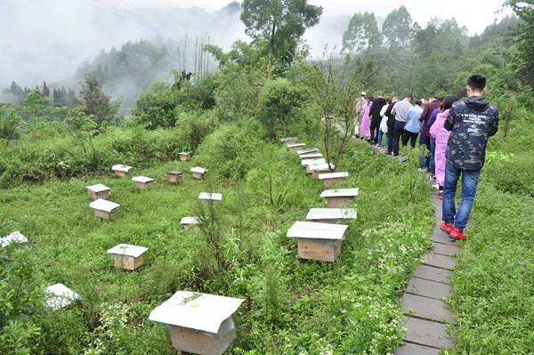 羅仁昌的種蜂場吸引人們前來參觀。江津區委宣傳部供圖
