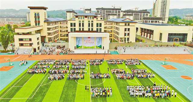 八月三十一日,新建成的璧山區實驗小學永嘉校區,開學典禮隊形排練正在進行。新學期,璧山區共建成一所小學和五所幼兒園,可提供公辦學位四千余個。特約攝影 謝捷\視覺重慶