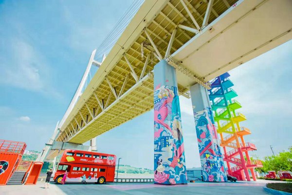 愛情文化長廊充分利用生態景觀游線將愛情文化的元素串聯到整個長廊中,以“大江之津 大愛之城”為主題,以長江濱水帶為脈絡,對橋墩、樓梯、綠化等環境進行了微改造。