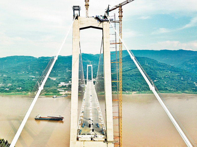 9月2日,萬州新田長江大橋主體完工。大橋為主跨1020米單跨雙鉸鋼箱梁懸索橋,全長1770米。