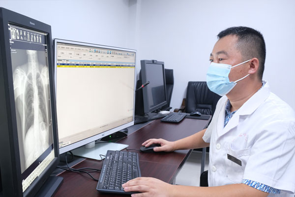 鄭青松的工作一點也不輕松。在診室外,眾多患者排隊等著拍片、拿報告,因此鄭青松和他的同事們一刻也不得閑。除此以外,他們還要在遠程平臺上接收來自鄉鎮衛生院發來的影像圖片,為那些無法來院的患者評估影像情況。