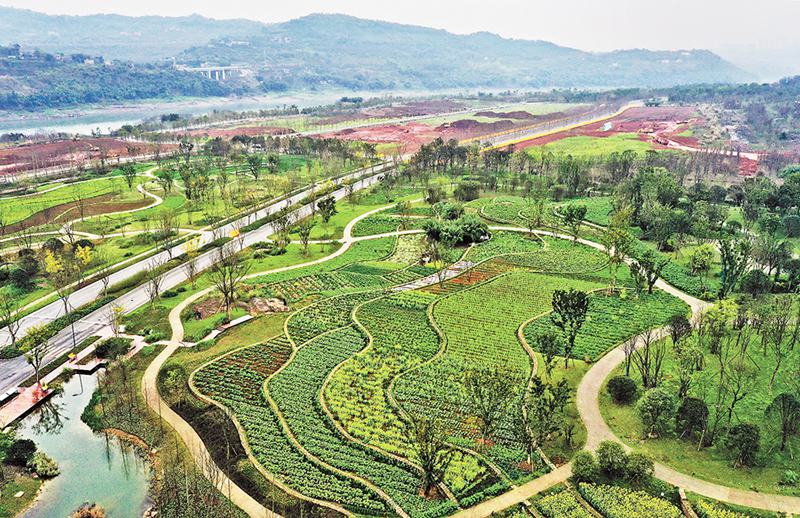 在廣陽島的示范帶動下,重慶中心城區山水林田湖草保護修復工程全面推進。長江、嘉陵江交匯形成的“兩江四岸”作為修復重點,其過去污染嚴重、功能缺乏、產業低端的濱水空間,現在已經煥然一新。