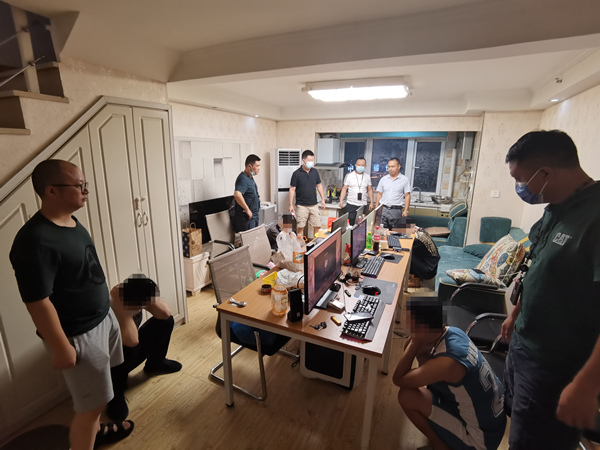 在全面掌握犯罪集團組織架構及人員組成,主要犯罪嫌疑人基本信息和日常動態,摸清16處詐騙窩點,掌握違法犯罪事實后。兩江新區警方于今年8月26日、9月2日,先后組織警力500余名發起突擊行動,兵分多路,在重慶江北、渝中、南岸、銅梁、永川、合川、兩江新區等地實施集中收網,累計抓獲犯罪嫌疑人218名,現場查扣涉案電腦367臺、手機360部,搗毀詐騙窩點16處,初步查明涉案金額達800余萬元。