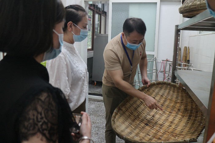 食堂后廚擺放的竹制簸箕引起了執法人員的注意。施懿攝