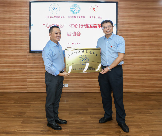 上海佑心慈善基金會向重醫大附屬兒童醫院授牌。院方供圖