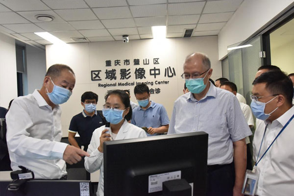 調研組在璧山區人民醫院詳細了解區域影像中心運行情況并提出意見建議。璧山區衛生健康委供圖