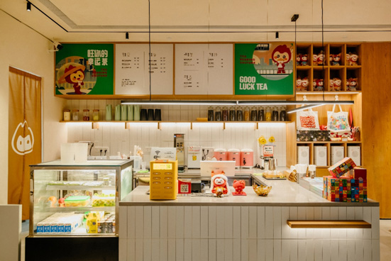 更準確地說,“小寶茶”不僅僅是一家茶飲店,而是由金科集團品牌自主策劃運營的第一家品牌IP線下體驗店,并以“旺你的幸運茶”作為其品牌主張。作為金科由傳統地產品牌向全新領域的跨界之舉,將承擔著金科品牌IP可視化、場景化、生活化、年輕化的多重使命。