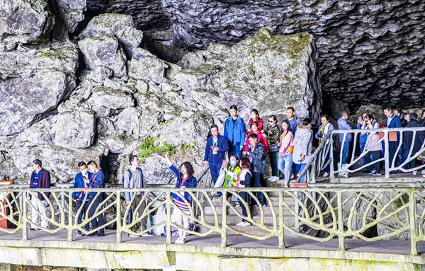 嘉賓在金佛山燕子洞考察金佛山喀斯特奇觀。南川區委宣傳部供圖