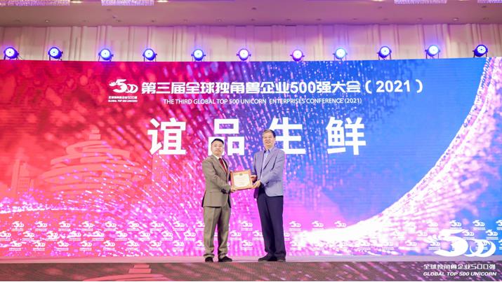 第三屆全球獨角獸企業500強大會(2021)頒獎現場。誼品生鮮供圖