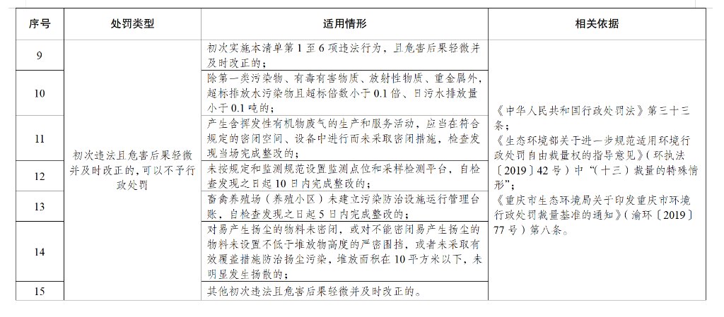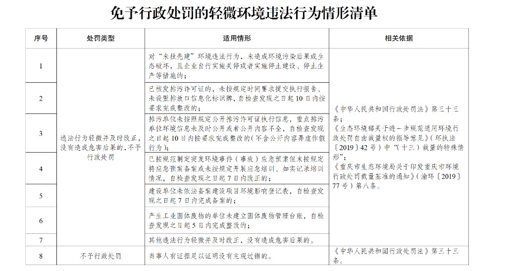 免于行政處罰的輕微環境違法行為情形清單(1)。市生態環境局供圖 華龍網-新重慶客戶端發