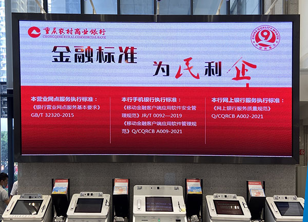 重慶農商行江北支行營業部通過液晶顯示屏開展“金融標準 為民利企”主題宣傳。重慶農商行供圖
