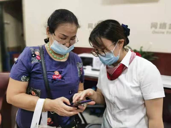 工作人員教客戶使用手機銀行。廣發銀行重慶分行供圖