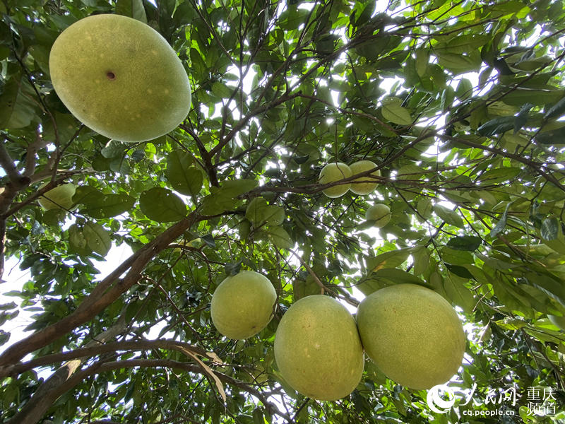 一個個又大又圓的柚子掛滿枝頭。人民網 劉政寧攝