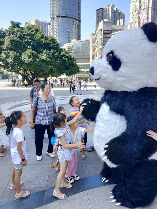 人民網重慶10月1日電 國慶節不打算外出遠行的,可以來九龍坡和熊貓實現一場最親密的接觸。為了營造濃厚節日氛圍,歡度國慶佳節,由九龍坡區文旅委、九龍坡區商圈辦、楊家坪街道辦事處、謝家灣街道辦事處、重慶征創服務有限公司主辦,九龍坡區文化館、圖書館承辦的“國寶迎國慶”——九龍坡熊貓游藝SOLO演出活動國慶在九龍坡區建設碼頭和楊家坪商圈上演。