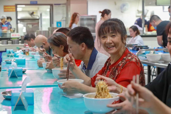 時代楷模馬善祥、全國道德模范提名獎曾美華、全國崗位學雷鋒最美人物張永忠、中國好人吳文界以及重慶市道德模范、重慶好人、江北區新時代百名身邊好人、江北區新鄉賢等50余名先進典型代表以及全區機關干部職工歡聚一堂,共吃“國慶面”。