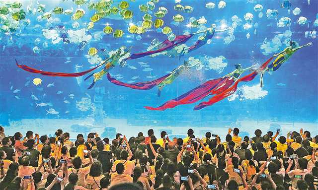 10月5日,巴南區漢海海洋公園,市民欣賞表演《再見飛天》。特約攝影 鐘志兵/視覺重慶