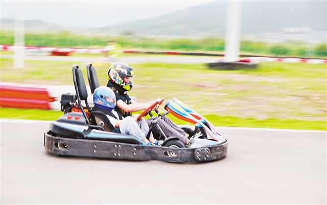 10月6日,游客在位于重慶市高新區的重慶汽車公園游玩,乘坐卡丁車,體驗汽車文化。通訊員 趙杰昌 攝/視覺重慶