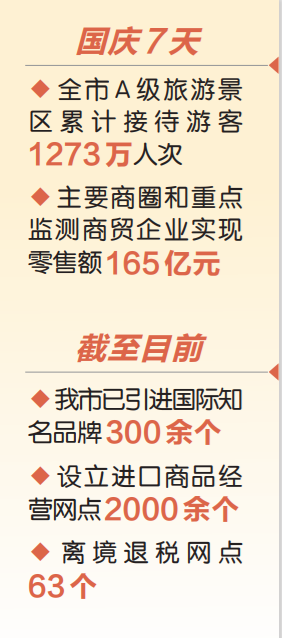 目前,我市已引進國際知名品牌300余個,設立進口商品經營網點2000余個、離境退稅網點63個。