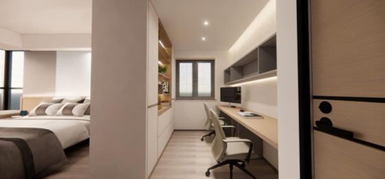 重新規劃了主臥、書房及衛生間的部分隔墻,獲得了一個2.5米的超長雙人辦公臺。