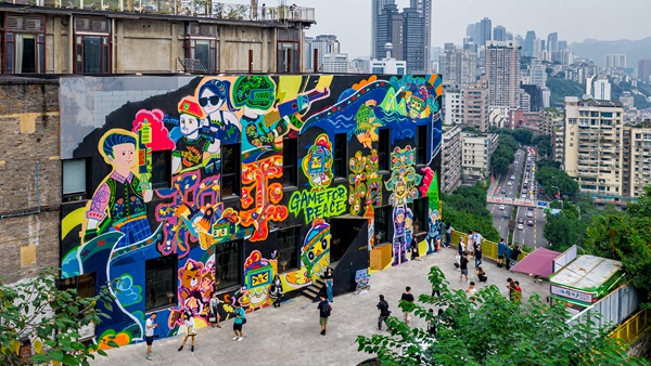 《和平精英》創意墻吸引游客拍照留影。騰訊供圖