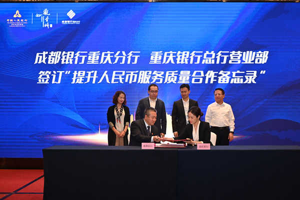 中國人民銀行重慶營業管理部黨委委員、副主任魏海濱指出,按照國家“十四五”規劃部署,人民銀行已經開始穩妥推進數字人民幣的研發試點,并多維度向全社會普及貨幣知識、傳播金融文化,保障貨幣發行與社會經濟密切聯系。同時,進一步深化區域經濟協調發展,尤其要暢通以重慶銀行和成都銀行為代表的兩地金融機構間互聯互通機制,保障兩家銀行現金業務雙向代理機制的正常運轉,擴大各自利用“雙城”機構網點、金庫調撥等方面的優勢,實現金融資源高效共享。此外,更要牢記為實體經濟服務的宗旨,建好政銀企“三方紐帶”,聚焦市場主體關切、打造良好金融環境,增強社會公眾、經濟實體對金融服務的獲得感與滿意度。