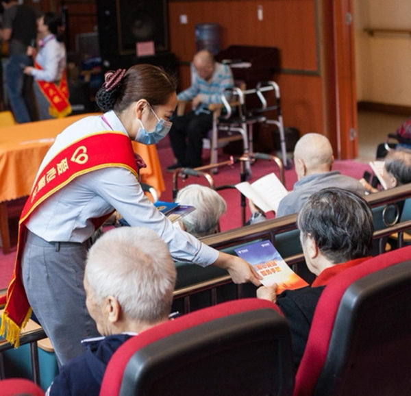 活動現場,愛心大使為老人們講解了重陽節的起源、傳說和節日寓意,隨后以通俗易懂的話語、幽默風趣的故事向養護中心60位老人講解詐騙的手段及遭遇詐騙的應對方法。最后,愛心大使為老人們分享秋冬養生小知識和注意事項,并送上了溫情禮品。