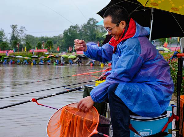 盡管“天公不作美”,雨勢時大時小,但絲毫不影響選手們的比賽熱情,個個是手不離桿、眼不離漂。開賽不到一分鐘,就陸續有選手釣上第一條魚,抄網、摘鉤、取魚忙得不亦樂乎。比賽期間,大家分享著垂釣心得,盡情享受比賽的樂趣,展示各自的垂釣技藝。