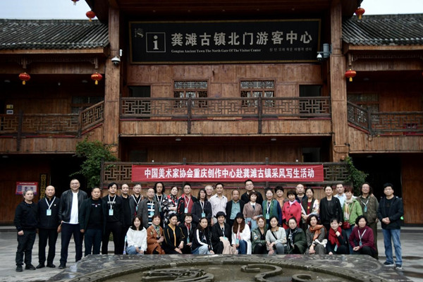 人民網重慶10月18日電 15日,中國美術家協會重慶創作中心龔灘寫生基地秋季寫生采風活動在龔灘景區拉開帷幕,活動邀請中美協會員約100位藝術家分批次深入龔灘,開展寫生采風、美術交流和研究、展覽活動。