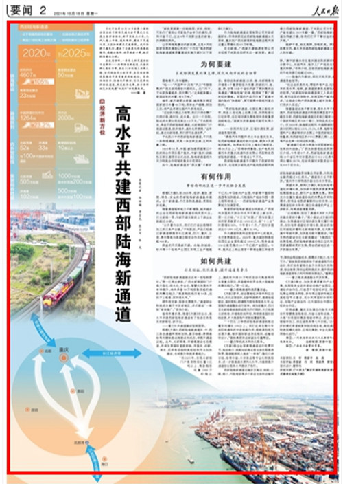 “西部陸海新通道,北接絲綢之路經濟帶,南連21世紀海上絲綢之路,協同銜接長江經濟帶,在區域協調發展格局中具有重要戰略地位!眹野l改委基礎司副司長周小棋說。