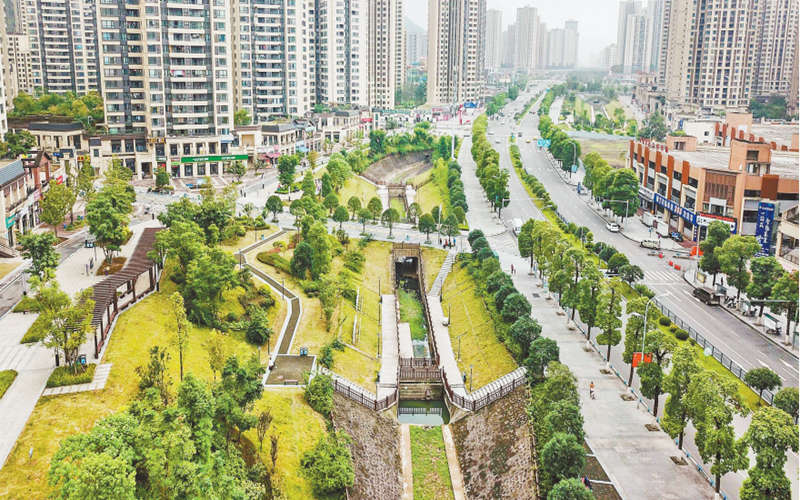 10月17日,巴南區龍洲灣街道龍澤路,曾經的河堤荒地通過改造,已經變身成為水生態景觀帶。