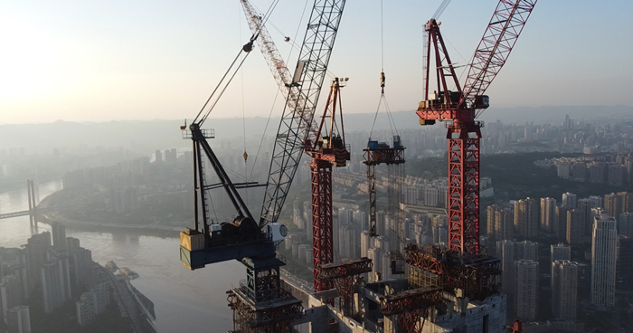 歷時42天 重慶陸海國際中心"空中造樓機"順利拆除